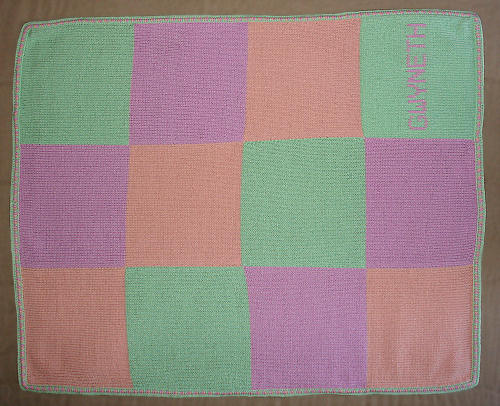 I am absolutely in love with what you sent me. It looks as gorgeous as I could've ever dreamed and I couldn't be happier with it!! This blanket's going to last years, and I can really see little camper growing with it. ... You put knitted gifts at the top of my list, because of all the care and time that is put into them. You will hear from me again soon! Have a great day! Jenny P., Mississauga Canada