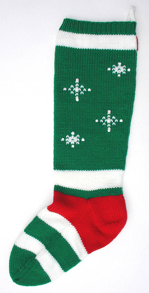Here are examples of custom Christmas stockings that I've knit with candy cane pictures on them. Candy canes are a favorite Christmas treat, and they can have a very striking effect on either a green or a white background.
